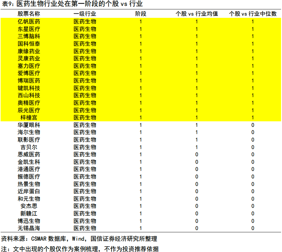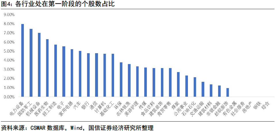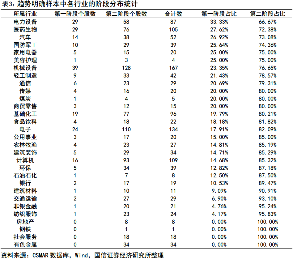 趨勢樣本池內(nèi)部的行業(yè)階段分布存在明顯差異,存在全階段覆蓋與單階段聚集兩種分布形態(tài)。