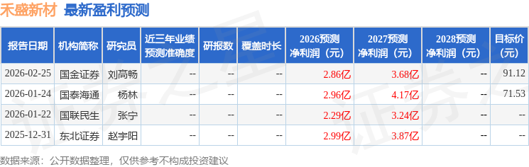最新盈利預(yù)測(cè)明細(xì)如下: